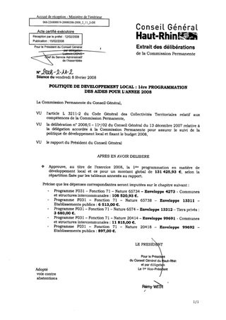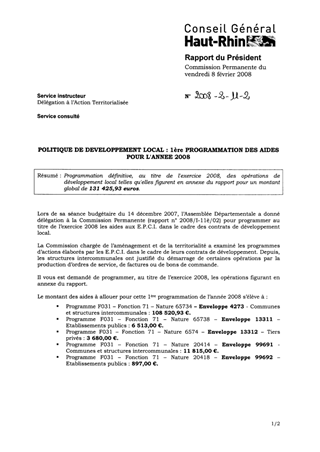 Politique de développement local : 1ère programmation des aides pour l'année 2008.