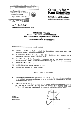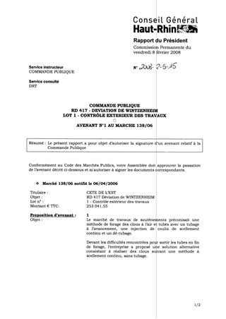 RD 417 Déviation de Wintzenheim Lot 1 Contrôle extérieur des travaux Avenant N°1 au marché 138/06