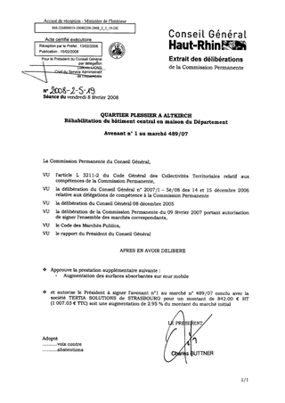 QUARTIER PLESSIER A ALTKIRCH Réhabilitation du bâtiment central en maison du Département Avenant n° 1 au marché 489/07