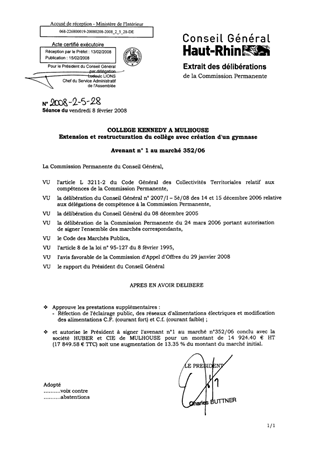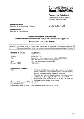 COLLEGE KENNEDY A MULHOUSE Extension et restructuration du collège avec création d'un gymnase Avenant n0 1 au marché 352/06