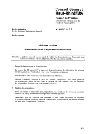 Le présent rapport a pour objet de valider la dénomination de l'ensemble des liaisons inscrites au schéma départemental des itinéraires cyclables.