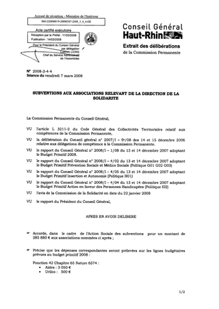 Subventions aux associations relevant de la Direction de la Solidarité.