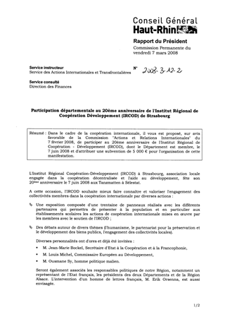 Participation départementale au 20ème anniversaire de l'Institut Régional de coopération développement (IRCOLD) de Strasbourg