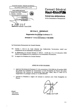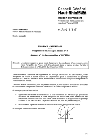 RD 8 bis II - BRUNSTATT - Suppression du passage à niveau n° 3 - Avenant n° 1 à la convention n° 83/2006.