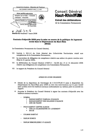 Contrats d'objectifs 2008 pour la mise en oeuvre de la politique du logement social dans le Département du Haut-Rhin (HO22).