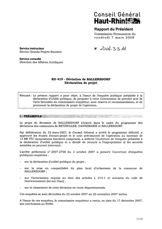 RD 419 - Déviation de BALLERSDORF - Déclaration de projet.