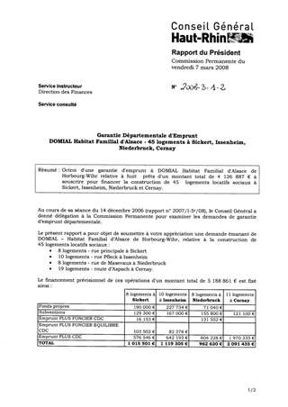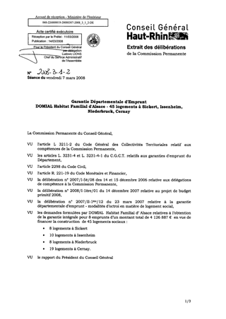 Garantie départementale d'emprunt DOMIAL Habitat Familial d'Alsace - 45 logements à SICKERT, ISSENHEIM, NIEDERBRUCK, CERNAY.