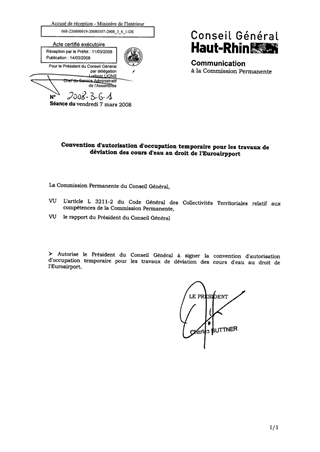 Convention d'autorisation d'occupation temporaire pour les travaux de déviation des cours d'eau au droit de l'Euroairport.