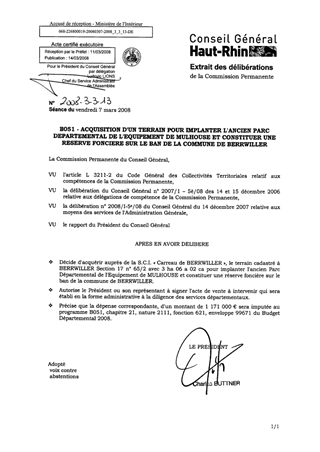 B051 - Acquisition d'un terrain pour implanter l'ancien parc départemental de l'équipement de MULHOUSE et constituer une réserve foncière sur le ban de la commune de BERRWILLER.