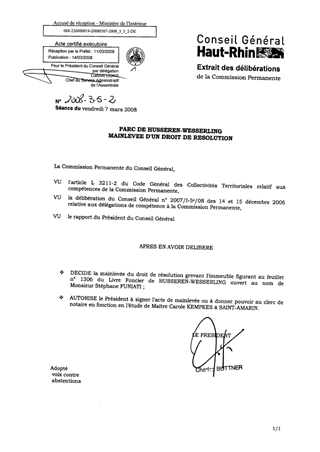 Parc de HUSSEREN-WESSERLING. Mainlevée d'un droit de résolution.