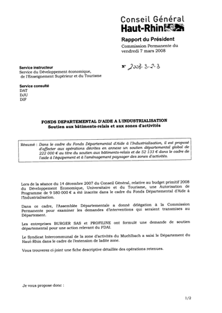 Fonds Départemental d'Aide à l'Industrialisation. Soutien aux bâitments-relais et aux zones d'activités.