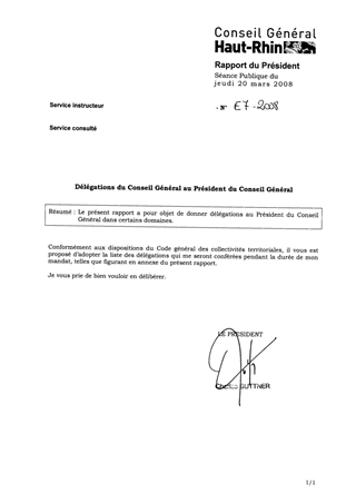 Le présent rapport a pour objet de donner délégations au Président du Conseil Général dans certains domaines.