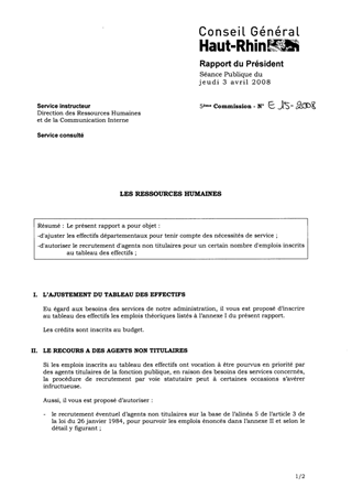 Le présent rapport a pour objet : -d'ajuster les effectifs départementaux pour tenir compte des nécessités de service ; -d'autoriser le recrutement d'agents non titulaires pour un certain nombre d'emplois inscrits au tableau des effectifs ;