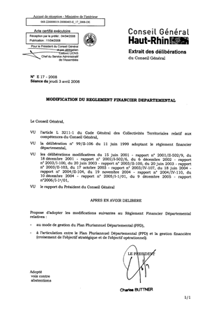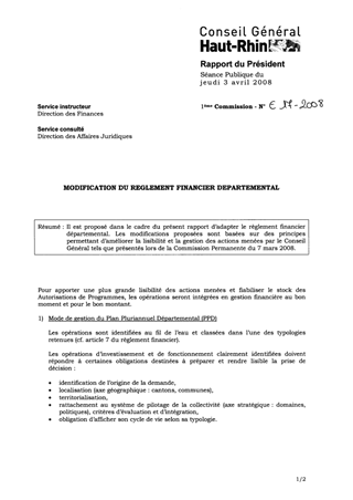 Il est proposé dans le cadre du présent rapport d’adapter le règlement financier départemental. Les modifications proposées sont basées sur des principes permettant d’améliorer la lisibilité et la gestion des actions menées par le Conseil Général tels que présentés lors de la Commission Permanente du 7 mars 2008