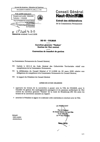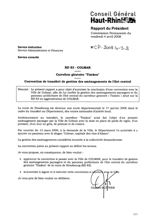 RD 83 Colmar - Carrefour giratoire "TIMKEN" Gestion de l'îlot central convention de transfert de gestion