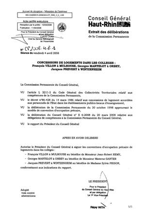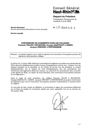 Concessions de logements dans les collèges François Villon à Mulhouse Georges Martelot à Orbey, Jacques Prévert à Wintzenheim