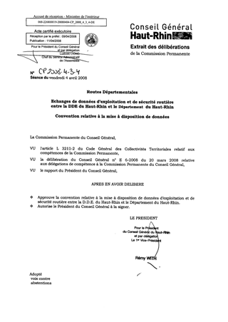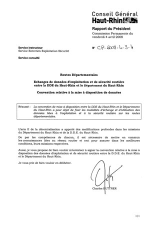 La convention de mise à disposition entre la DDE du Haut-Rhin et le Département du Haut-Rhin a pour objet de fixer les modalités d’échange et d’utilisation des données liées à l’exploitation et à la sécurité routière sur les routes départementales.