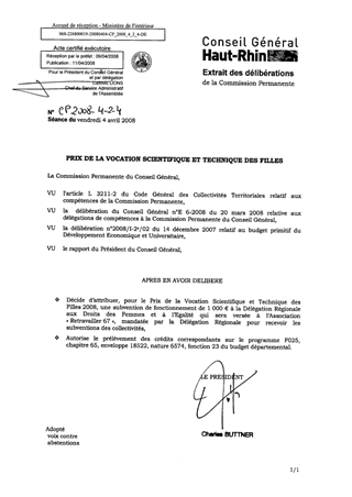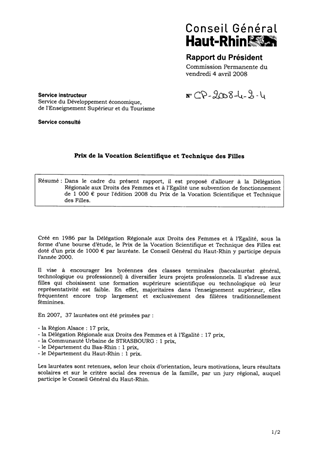 Dans le cadre du présent rapport, il est proposé d'allouer à la Délégation Régionale aux Droits des Femmes et à l'Egalité une subvention de fonctionnement de 1 000 € pour l'édition 2008 du Prix de la Vocation Scientifique et Technique des Filles.