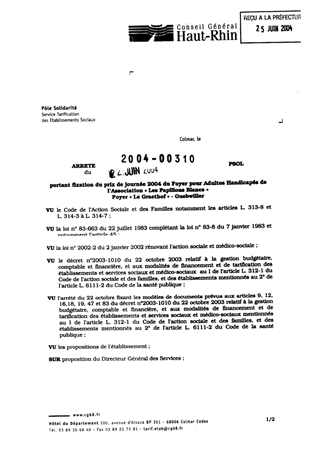 Portant fixation du prix de jounée 2004 du Foyer pour Adultes Handicapés de l'Association "Les Papillons Blancs" Foyer "Le Graethof" - Guebwiller Resumé Pièces jointes ARRETE Assemblée : Non défini Date : 22/06/2004 Rapporteur : Non défini Collectivité : Conseil départemental du Haut-Rhin Direction : Non défini Service : Service de la Tarification des Etablissements Domaine : Prix de Journée Commission :