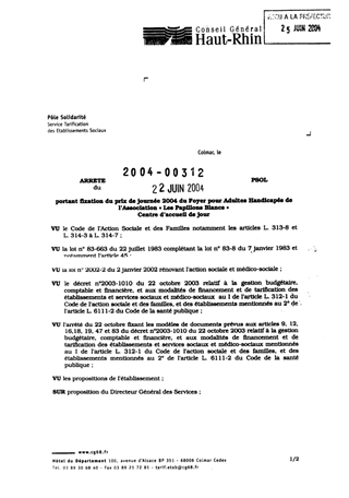 Portant fixation du prix de journée du Foyer pour Adultes Handicapés de l'Association " Les Papillons Blancs" Centre d'accueil de jour Resumé Pièces jointes ARRETE Assemblée : Non défini Date : 22/06/2004 Rapporteur : Non défini Collectivité : Conseil départemental du Haut-Rhin Direction : Non défini Service : Service de la Tarification des Etablissements Domaine : Prix de Journée Commission :