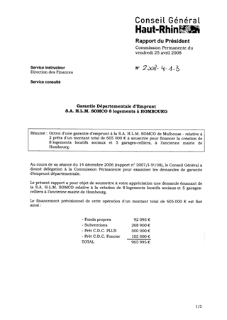 Garantie départementale d'emprunt SA HLM SOMCO 8 Logements à Hombourg