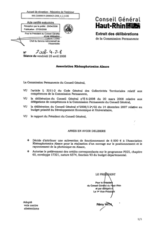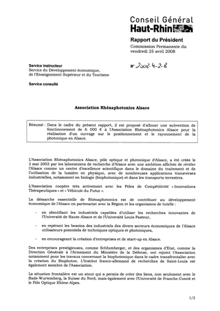 Dans le cadre du présent rapport, il est proposé d'allouer une subvention de fonctionnement de 6 000 € à l'Association Rhénaphotonics Alsace pour la réalisation d'un ouvrage sur le positionnement et le rayonnement de la photonique en Alsace.
