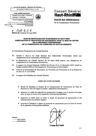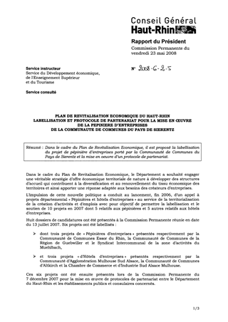 PLAN DE REVITALISATION ECONOMIQUE DU HAUT-RHIN LABELLISATION ET PROTOCOLE DE PARTENARIAT POUR LA MISE EN ŒUVRE DE LA PEPINIERE D’ENTREPRISES DE LA COMMUNAUTE DE COMMUNES DE SIERENTZ