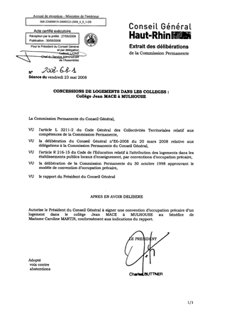 CONCESSIONS DE LOGEMENTS DANS LES COLLEGES : Collège Jean MACE à MULHOUSE
