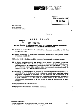 Portant fixation du prix de journée 2004 du foyer pour Adultes handicapés Travailleurs de l'AFAPEI de BARTENHEIM Resumé Pièces jointes ARRETE Assemblée : Non défini Date : 30/06/2004 Rapporteur : Non défini Collectivité : Conseil départemental du Haut-Rhin Direction : Non défini Service : Service de la Tarification des Etablissements Domaine : Prix de Journée Commission :