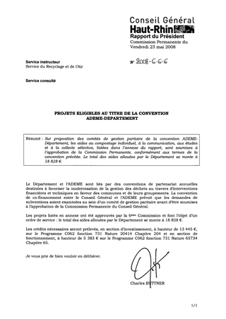 Sur proposition des comités de gestion paritaire de la convention ADEME-Département, les aides au compostage individuel, à la communication, aux études et à la collecte sélective, listées dans l’annexe du rapport, sont soumises à l’approbation de la Commission Permanente, conformément aux termes de la convention précitée. Le total des aides allouées par le Département se monte à 18 828 €.