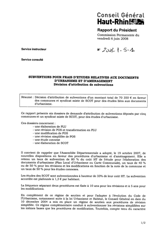 SUBVENTIONS POUR FRAIS D’ETUDES RELATIVES AUX DOCUMENTS D’URBANISME ET D’AMENAGEMENT Décision d’attribution de subventions