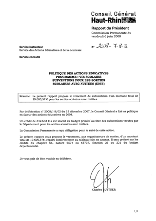 Le présent rapport propose le versement de subventions d’un montant total de 19.600,57 € pour les sorties scolaires avec nuitées.