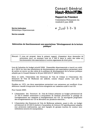 Il vous est proposé, dans le présent rapport, d'examiner deux demandes de subvention pour un montant total de 4 200 € dans le cadre des aides au fonctionnement des associations et autres organismes de droit privé.