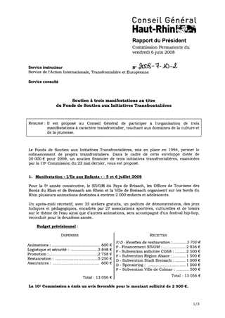 Il est proposé au Conseil Général de participer à l'organisation de trois manifestations à caractère transfrontalier, touchant aux domaines de la culture et de la jeunesse.