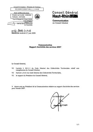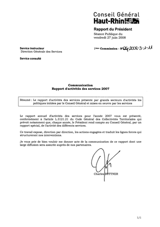 COMMUNICATION RAPPORT D'ACTIVITES DES SERVICES 2007