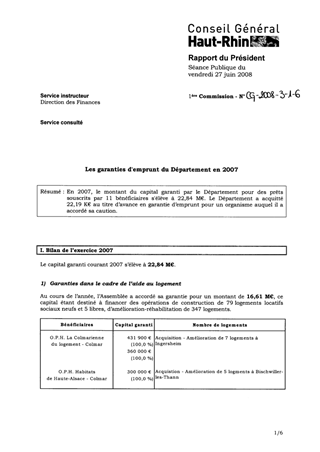 LES GARANTIES D'EMPRUNT DU DEPARTEMENT EN 2007