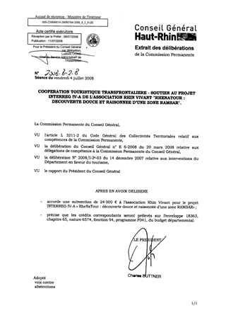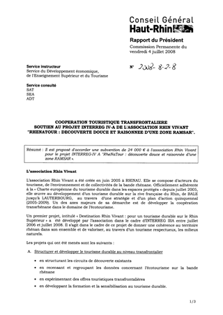 Coopération touristique transfrontalière Soutien au projet INTERREG IV-A de l'Association Rhin vivant RHENATOUR Découverte douce et raisonnée d'une zone RAMSAR