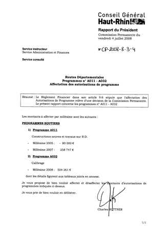 Routes départementales Programmes A011 A032 Affectation et désaffectation des autorisations de programme