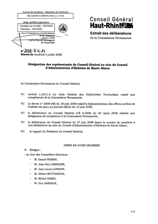 Désignation des représenants du Conseil Général au sein du Conseil d'Administration d'Habitats de Hautes-Alsace.