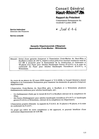 Garantie départementale d'emprunt Association Croix Marine Wittenheim