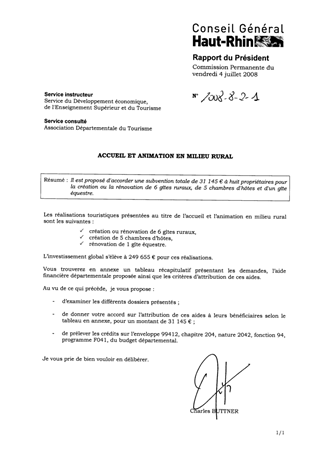 Il est proposé d'accorder une subvention totale de 31 145 € à huit propriétaires pour la création ou la rénovation de 6 gîtes ruraux, de 5 chambres d'hôtes et d'un gîte équestre.