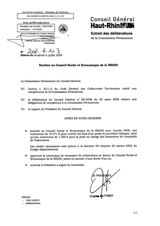 Il est proposé à la Commission Permanente le versement d’une subvention de fonctionnement de 19 071 € au Conseil Social et Economique de la REGIO, association de soutien aux travailleurs frontaliers, pour couvrir les frais d’un poste de secrétaire bilingue ainsi qu’une subvention de 1 200 € pour le financement des honoraires du comptable de l’association.
