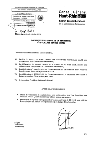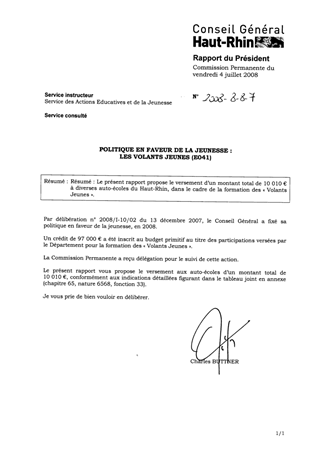 Résumé : Le présent rapport propose le versement d’un montant total de 10 010 € à diverses auto-écoles du Haut-Rhin, dans le cadre de la formation des « Volants Jeunes ».