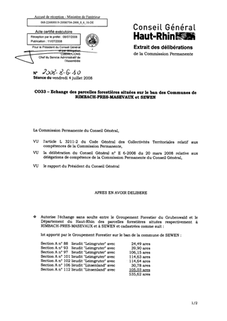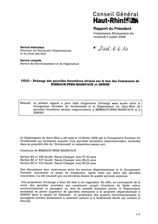 C033 - Echange des parcelles forestières situées sur le ban des communes de Rimbach-près-Masevaux et Sewen