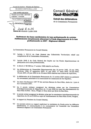 Ecrêtement des bases excédentaires de taxe professionnelle de certains établissements exceptionnels alimentant le fonds départemental de la taxe professionnelle en 2007 - Réglement définitif