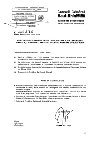 Convention financière entre l'Association pour l'Ecomusée d'Alsace, la Région Alsace et le Département du Haut-Rhin