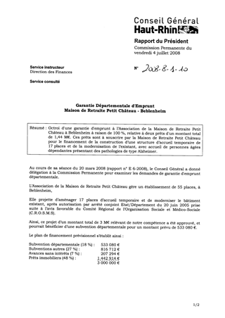 Garantie départementale d'emprunt Maison de retraite Petit Chateau - Beblenheim