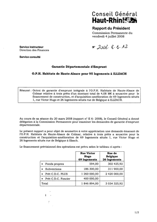 Octroi de garantie d'emprunt intégrale à l'O.P.H. Habitats de Haute-Alsace de Colmar relative à trois prêts d’un montant total de 4,08 M€ à souscrire pour le financement de construction, et d’acquisition-amélioration de 69 logements situés 1, rue Victor Hugo et 26 logements situés rue de Belgique à ILLZACH.
