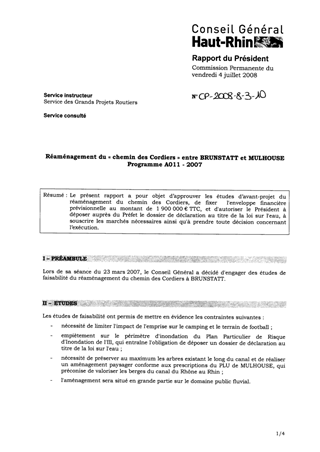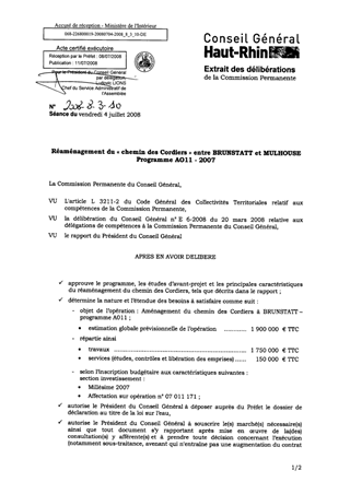 Réaménagement du "chemin des Cordiers" entre Brunstatt et Mulhouse - Programme A 011 - 2007
