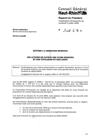 SOUTIEN A L'ANIMATION SPORTIVE LES ACTIONS EN FAVEUR DES CLUBS SPORTIFS ET DES TITULAIRES DU BAFA-BAFD